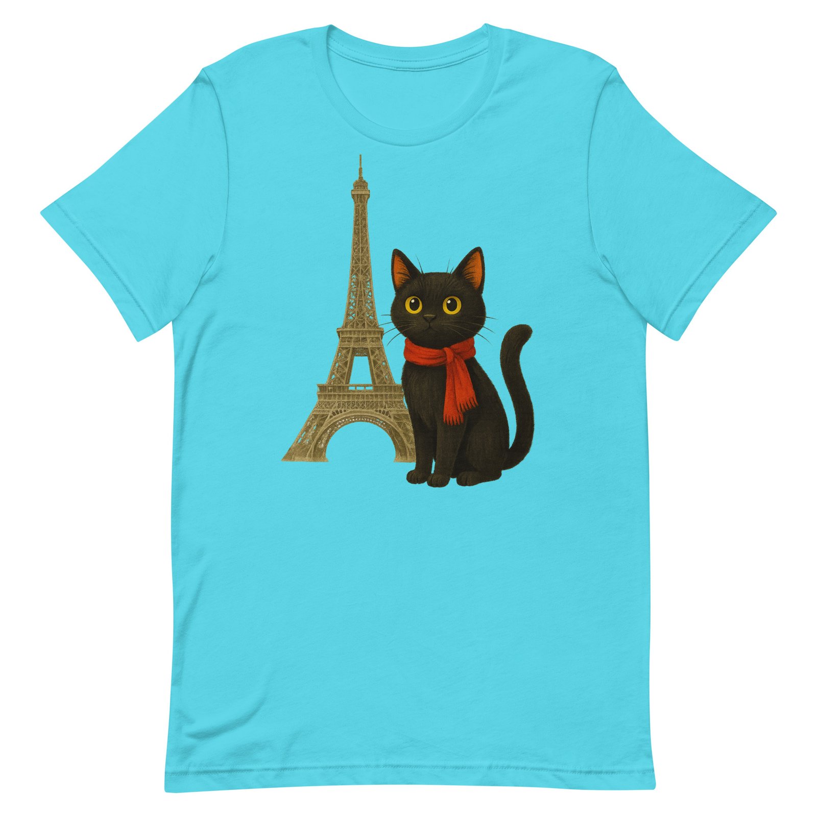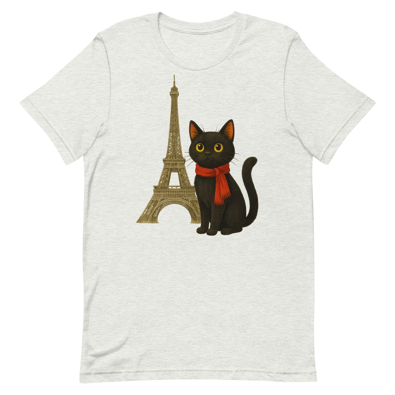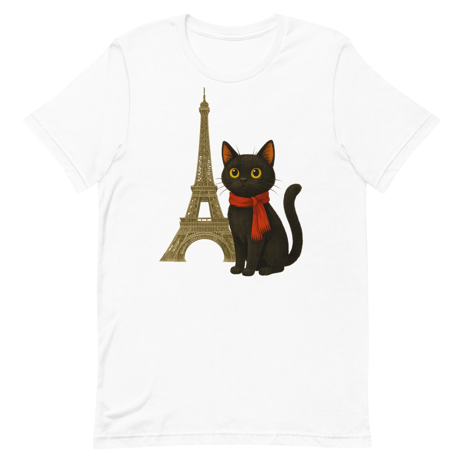 Bring a touch of Parisian charm to your style with this adorable design featuring a black cat wearing a red scarf, sitting gracefully in front of the Eiffel Tower. Perfect for cat lovers and those who adore the cozy elegance of France, this artwork combines cute feline vibes with timeless Parisian beauty. Ideal for T-shirts, hoodies, tote bags, or prints — it’s a must-have for anyone who dreams of Paris with a touch of whiskers and warmth.