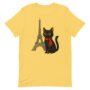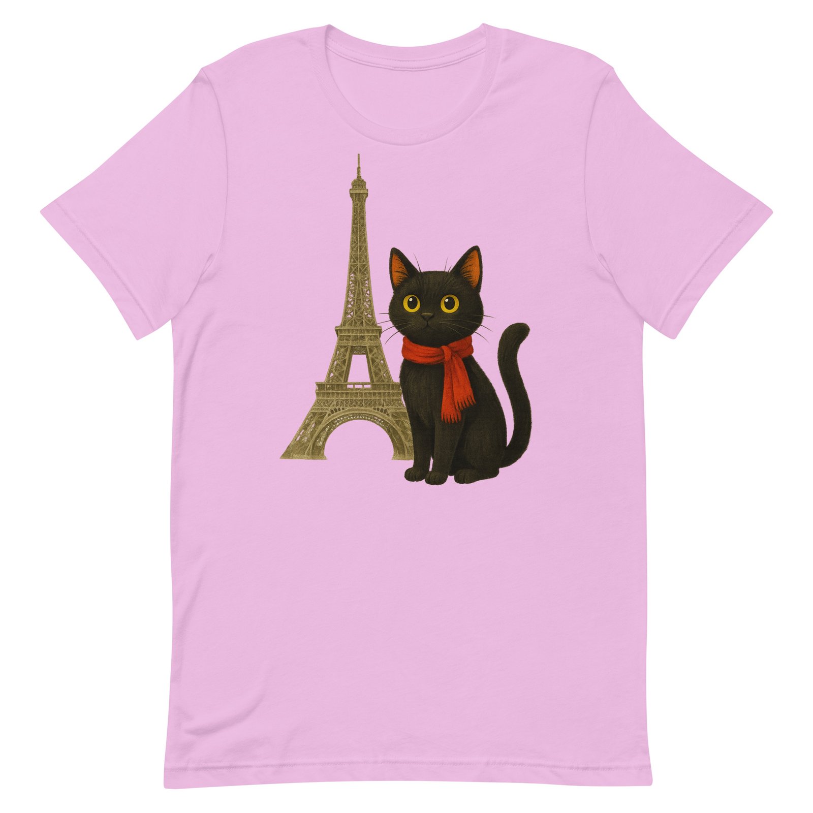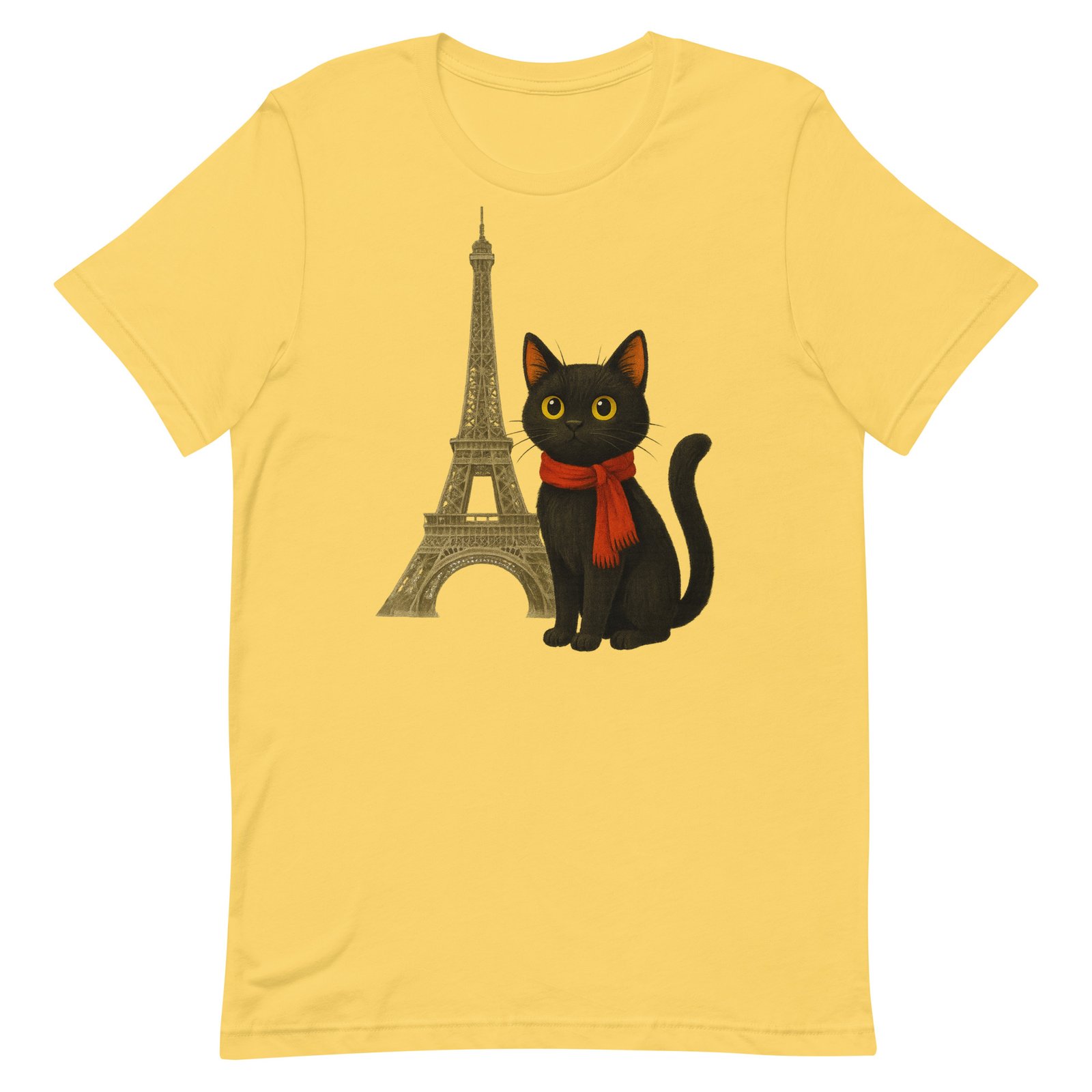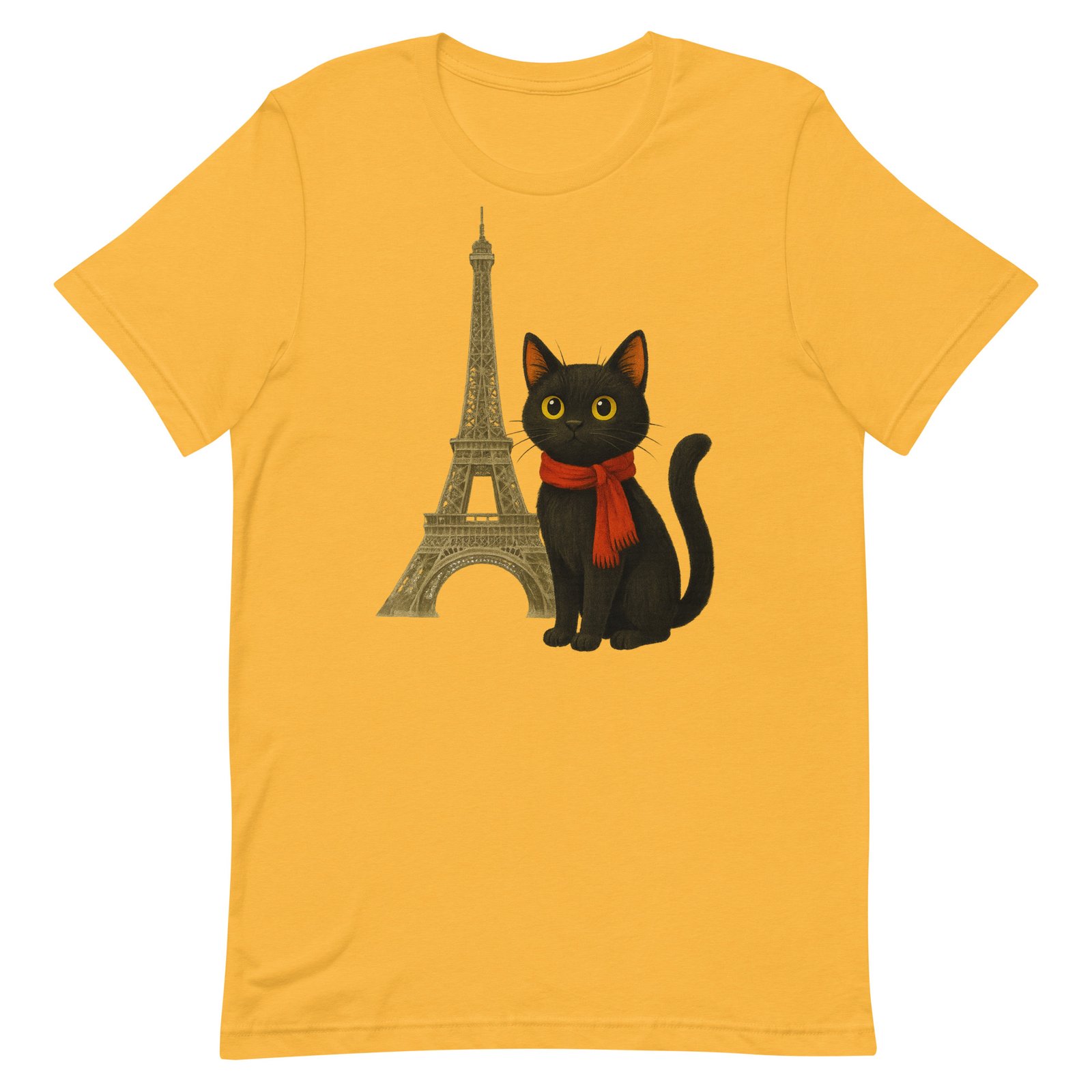 Bring a touch of Parisian charm to your style with this adorable design featuring a black cat wearing a red scarf, sitting gracefully in front of the Eiffel Tower. Perfect for cat lovers and those who adore the cozy elegance of France, this artwork combines cute feline vibes with timeless Parisian beauty. Ideal for T-shirts, hoodies, tote bags, or prints — it’s a must-have for anyone who dreams of Paris with a touch of whiskers and warmth.
